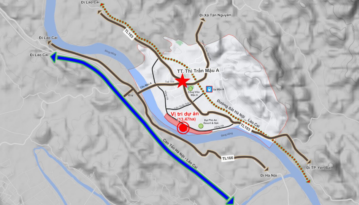 - Vị trí dự án: đường Hồng Hà, thị trấn Mậu A, huyện Văn Yên, tỉnh Yên Bái.