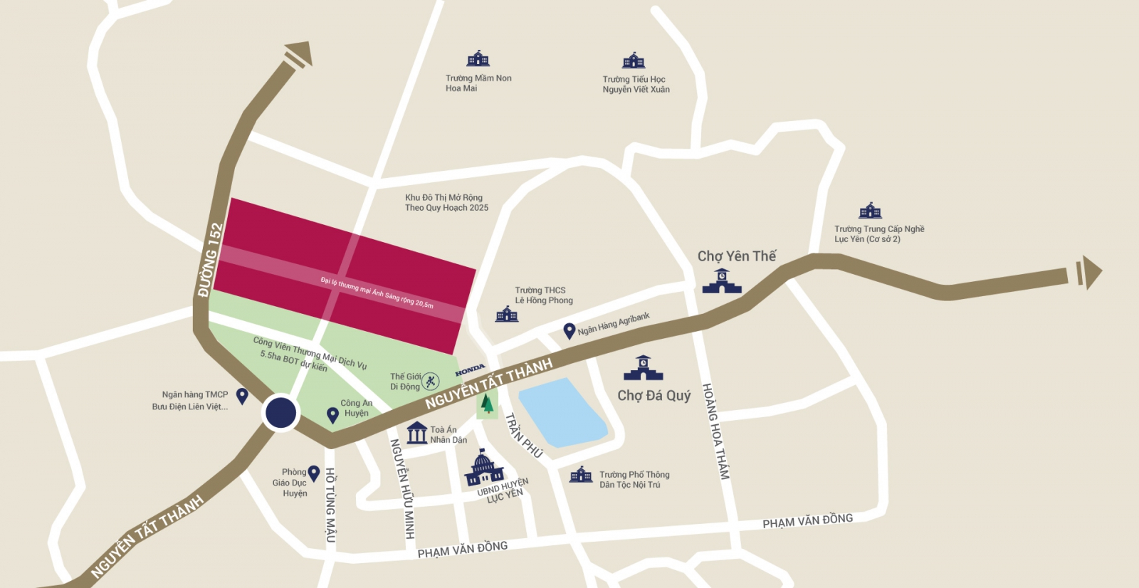 - Dự án TNR Stars City Lục Yên tọa lạc tại trung tâm thị trấn Yên Thế, huyện Lục Yên, tỉnh Yên Bái chỉ cách chợ đá quý chưa đầy 200m. Đây là vị trí đắt giá của huyện Lục Yên, kết nối với trục trung tâm Nguyễn Tất Thành và với tuyến đường tỉnh lộ 152. Không chỉ thuận tiện về giao thông, người dân trong dự án còn được hưởng những tiện ích trong trục phát triển kinh tế Hà Nội - Phú Thọ - Yên Bái.