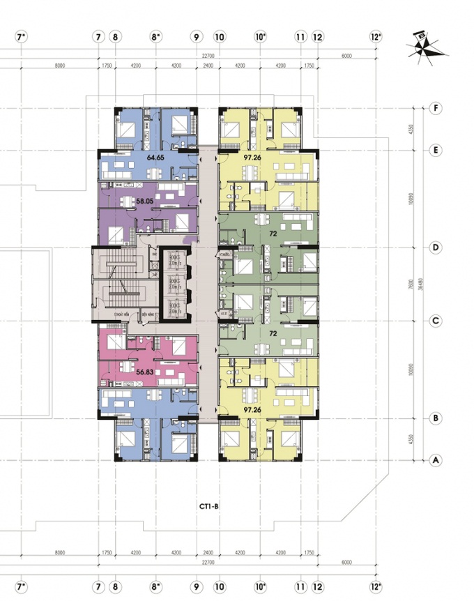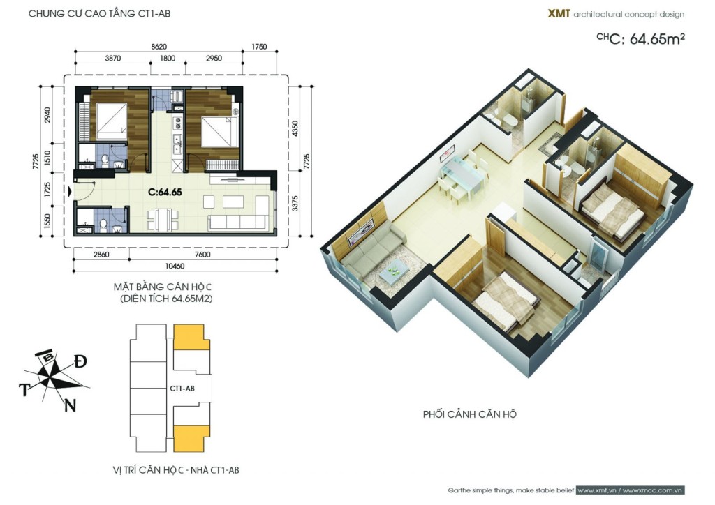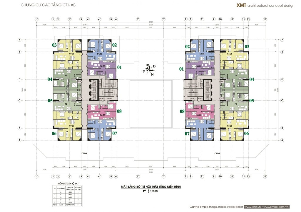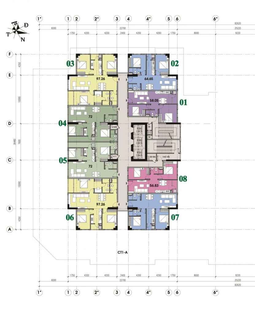 - Diện tích căn hộ tại dự án gồm: 56m2; 58m2; 64m2; 71m2 và 97m2.