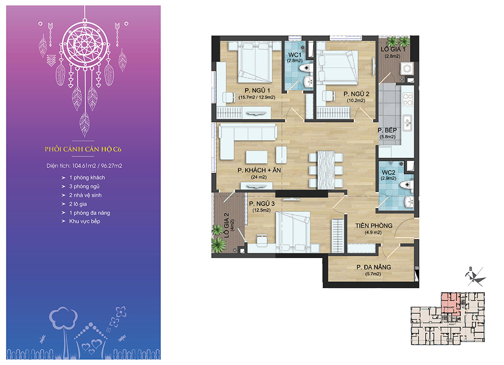 - Các không gian chức năng và kỹ thuật tại Dream Center Home được thiết kế khoa học để việc sử dụng và vận hành căn hộ thuận lợi. Lôgia rộng thoáng ở mỗi căn hộ để gia đình bạn tạo 1 góc vườn riêng để thư giãn mỗi ngày. Thiết kế căn hộ đảm bảo chất lượng cuộc sống cao và có nét riêng của gia chủ trong mỗi căn hộ.
