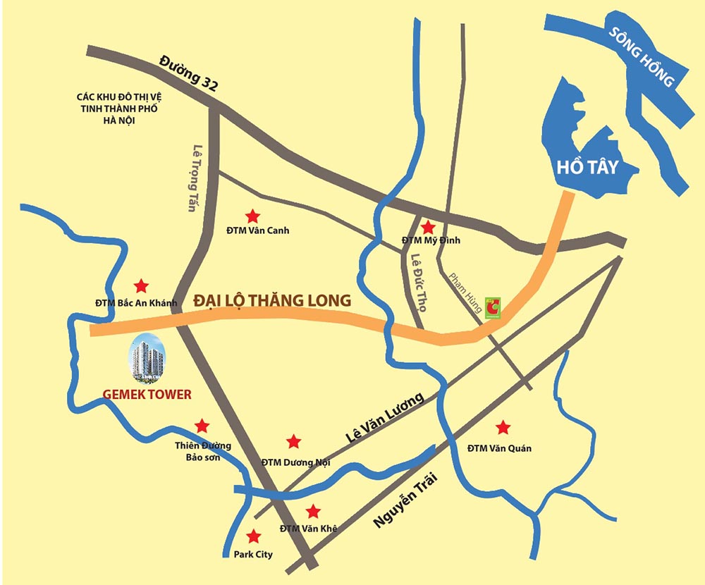 - Tổ hợp Gemek Tower nằm tại vị trí ngay cổng vào khu đô thị Geleximco, cách nút giao giữa Đại Lộ Thăng Long và Lê Trọng Tấn 50m, cách Big C chỉ 4km, Trung tâm hội nghị Quốc Gia 4km, Trường THPT Amsterdam 4,5 km... Xung quanh là các khu đô thị vệ tinh phát triển bậc nhất Thành phố Hà Nội như: Nam An Khánh, Bắc An Khánh, Vườn Cam, Vân Canh, Xuân Phương, Dương Nội, An Hưng, Văn Khê,... đây được coi là thành phố mới phía Tây Thủ Đô, kết nối thuận tiện cách trung tâm thành phố chỉ 10p đi xe