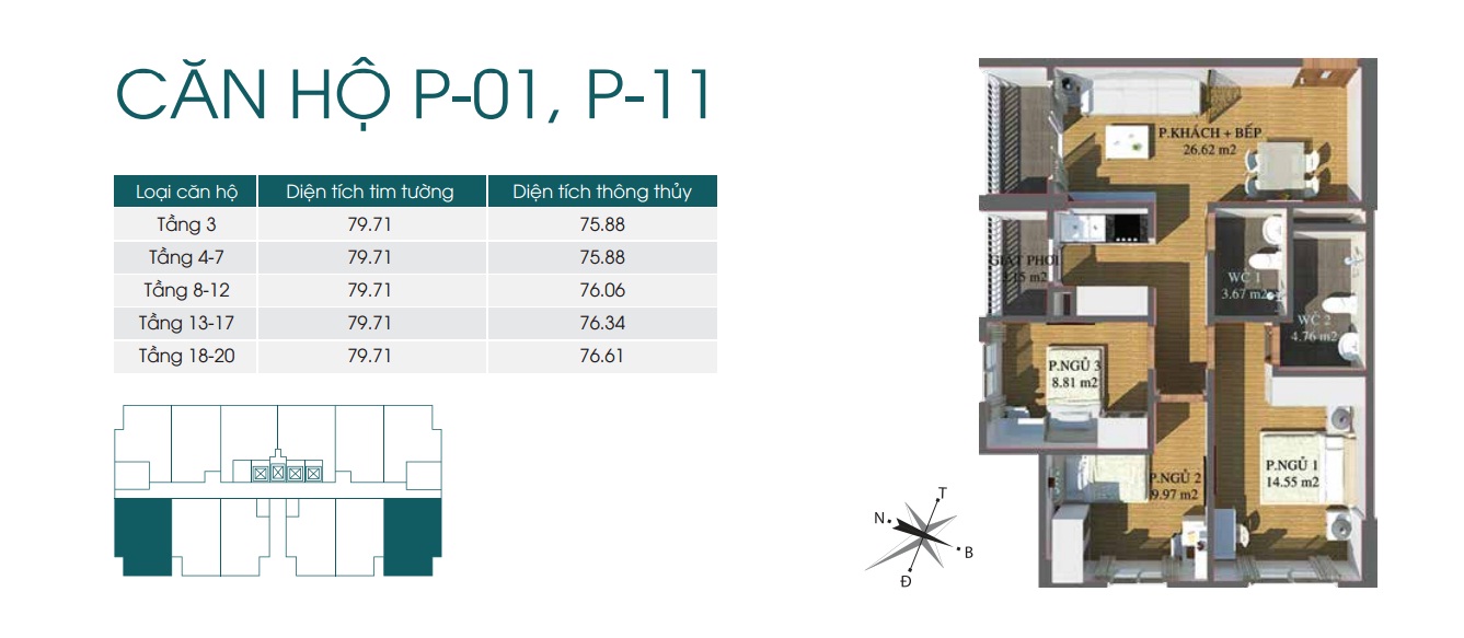 - Diện tích căn hộ: 59-60-61-63-75m2