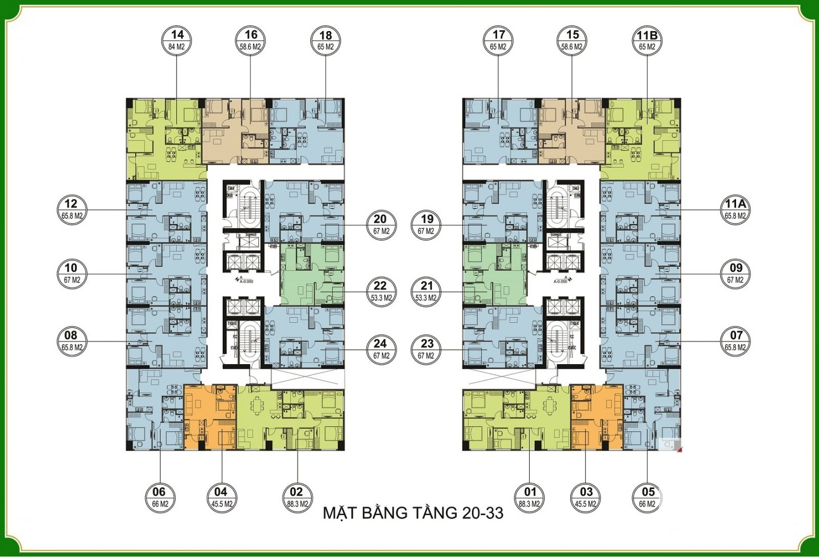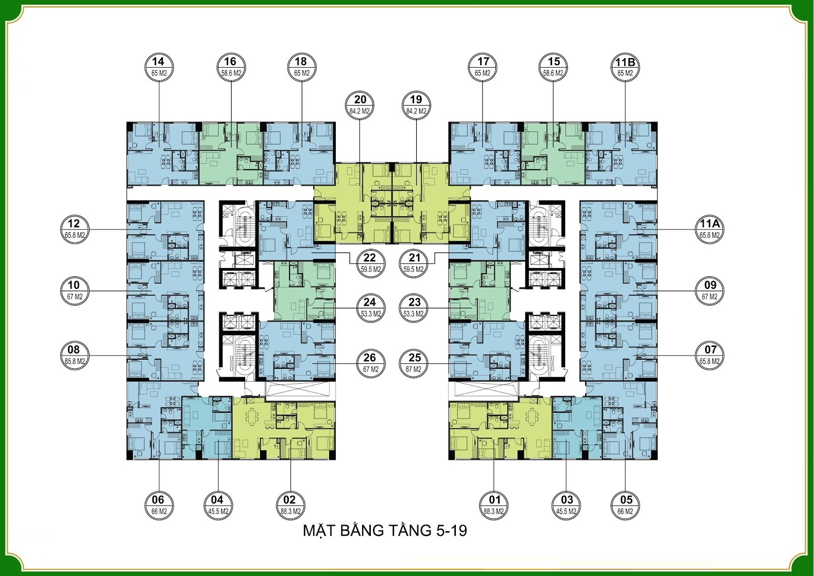 - Diện tích căn hộ: 49m2 - 53m2 - 55m2 - 64m2 - 67m2