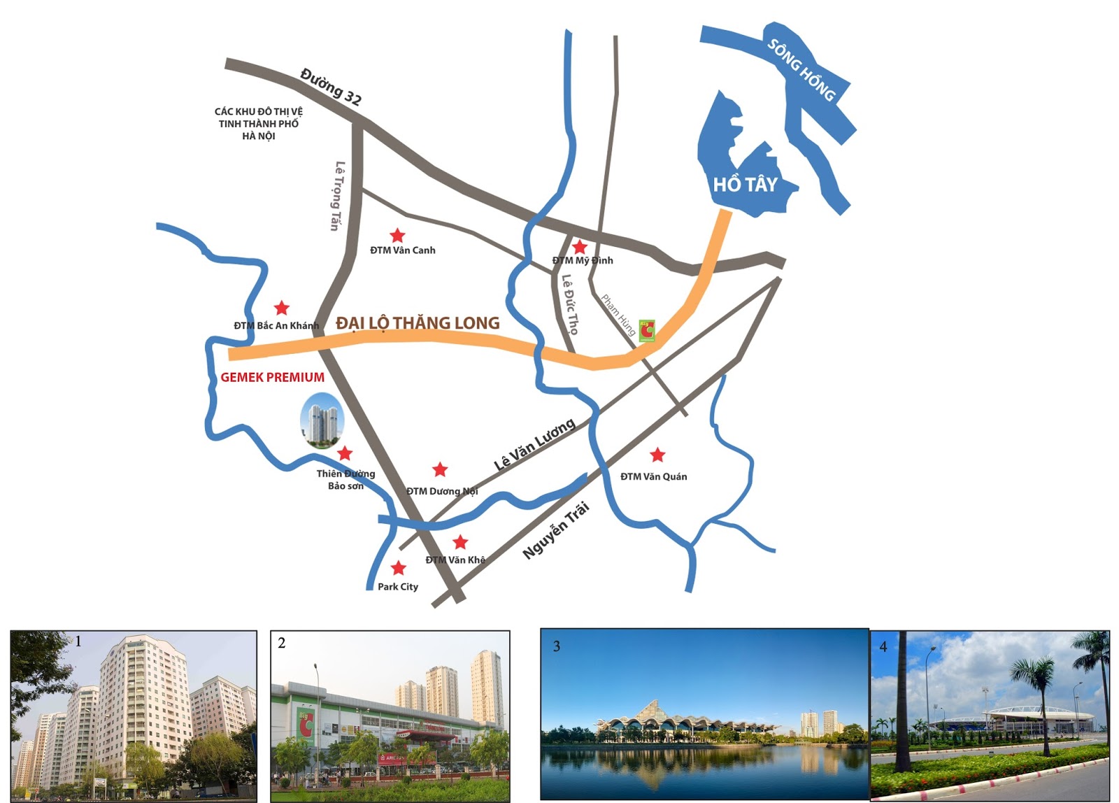- Gemek Premium Tọa lạc tại vị trí đắc địa liền kề khu công viên thiên đường Bảo Sơn, xung quanh quần thể cơ sở hạ tầng đã ổn định, cả 4 phía không có tòa nhà nào che chắn tầm nhìn. Từ Trung tâm Gemek Premium thật dễ dàng di chuyển đến các khu vực trọng yếu trung tâm Hà Nội từ các con đường lớn như Đại Lộ Thăng Long, đường Lê Trọng Tấn…