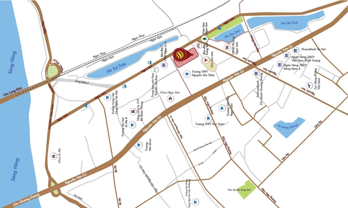 - Cư dân sinh sống tại dự án chỉ cần mất khoảng 7-10 phút để di chuyển tới siêu thị BigC, trung tâm thương mại Aeonmall Long Biên, Bệnh viện Hồng Ngọc, bệnh viện quân đội. Hay chỉ cần từ 10-15 phút để tới Hồ Tây, Phố Cổ. 30 phút để tới sân bay Nội Bài, đặc biệt là có trường THPT Nguyễn Gia Thiều, trung tâm y tế cộng đồng đối diên dự án.