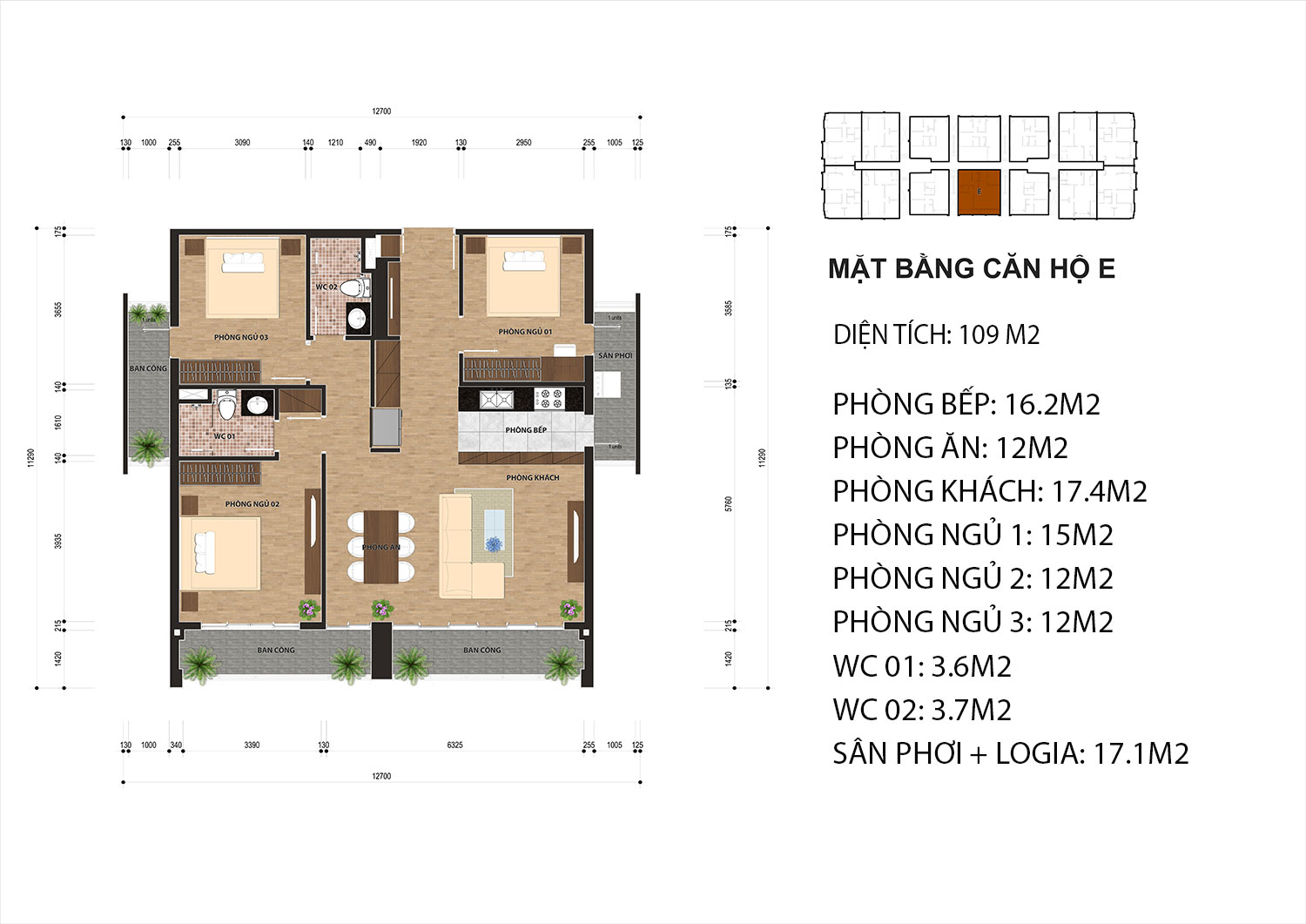 - Cơ cấu căn hộ: 2 – 3 PN,