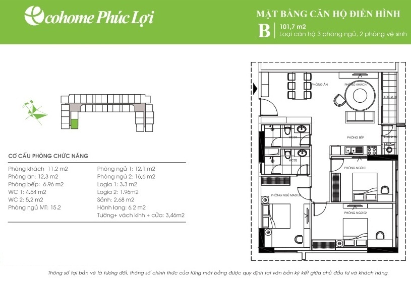 - Cơ cấu căn hộ: từ 45m2 đến 107,9m2