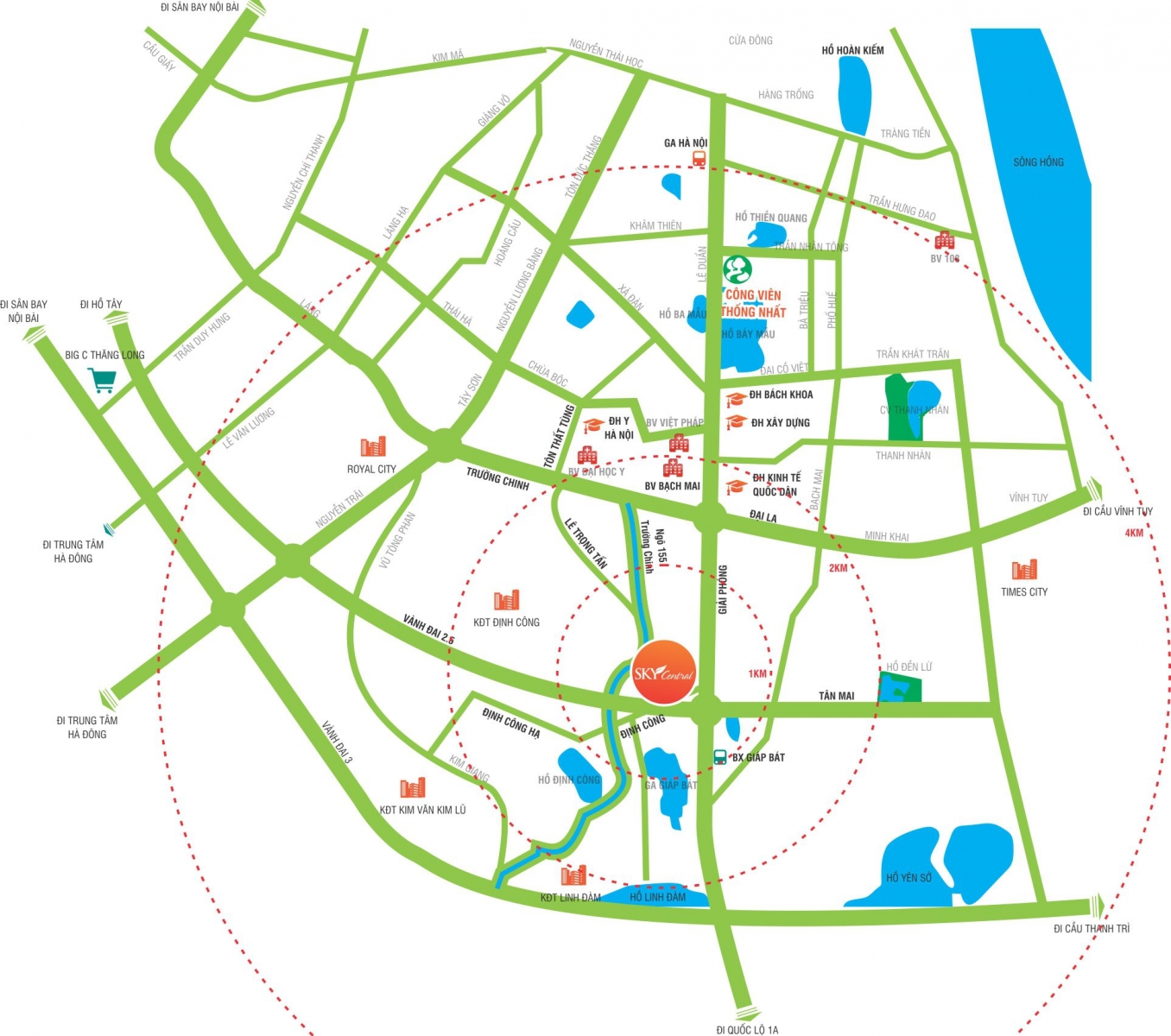 - Sky Central nằm tại vị trí số 176 phố Định Công. Tọa lạc tại Vị trí Vàng Quận Hoàng Mai Mặt đường vành đai 2.5 đấu nối KĐT Định Công và đường Kim Đồng. Liền kề các Quận Hai Bà Trưng, Quận Thanh Xuân. Đặc biệt chỉ mất 10 phút để đi vào Trung tâm TP Hà Nội. Chung cư 176 Định Công nằm ngay gần nút giao Giải Phóng – Định Công, vị trí vàng tại cửa ngõ phía Nam của thủ đô, gần Quốc lộ 1A thuận tiện giao thương với các tỉnh phía Nam Hà Nội, đồng thời kết nối với các tỉnh phía Bắc Hà Nội từ tuyến đường giao thông gần đường vành đai.