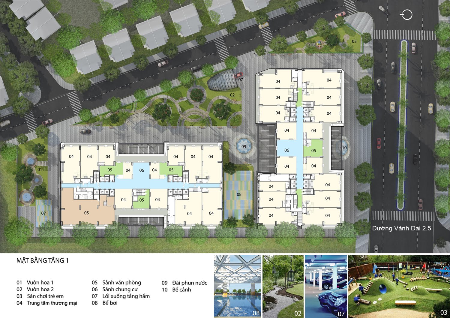 - Diện tích sinh hoạt cộng đồng: 720 m2