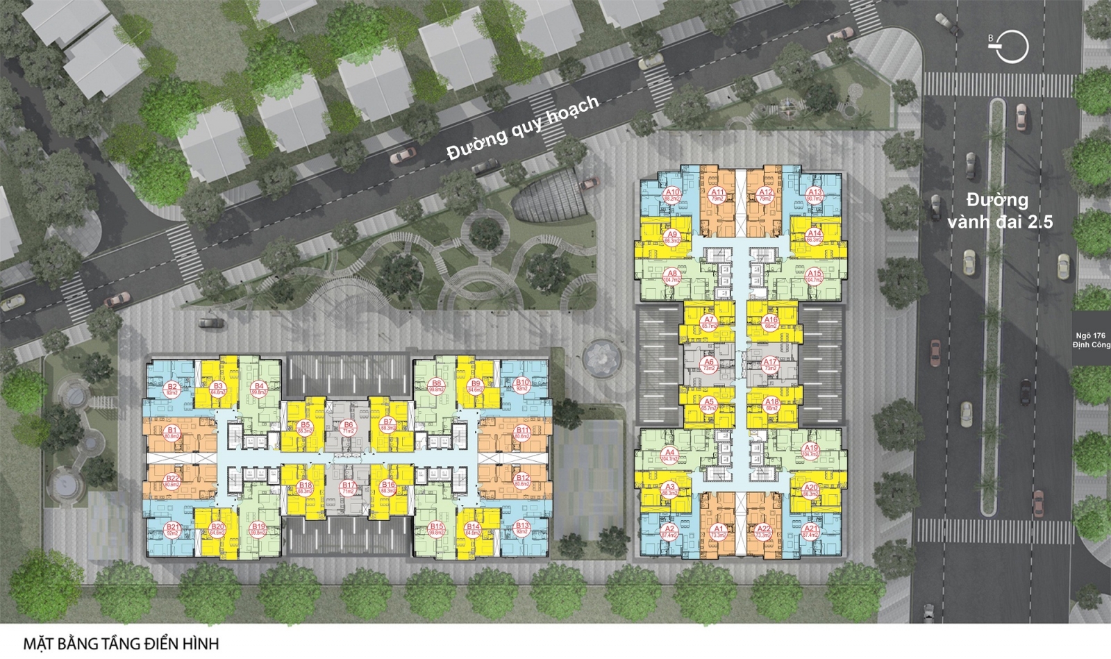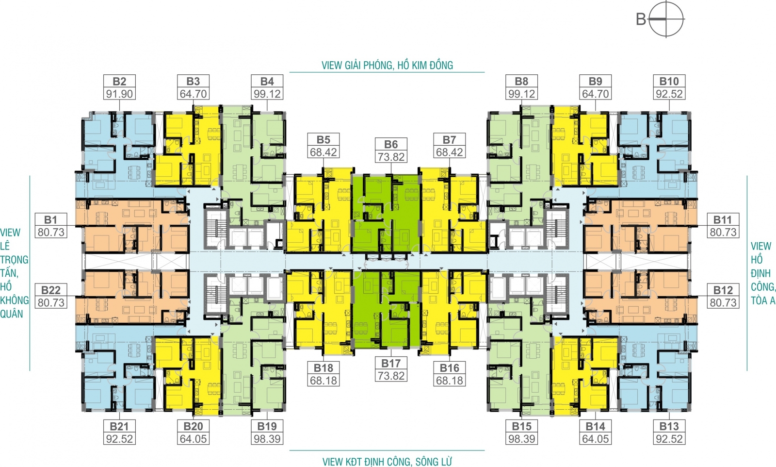 - Tòa B: 396 căn tòa B (18 tầng căn hộ)