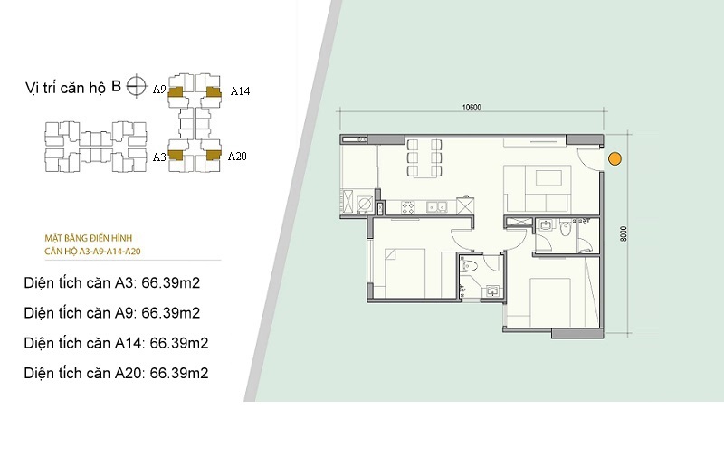 - Căn loại 2 PN: 67,1m2 - 80,3m2