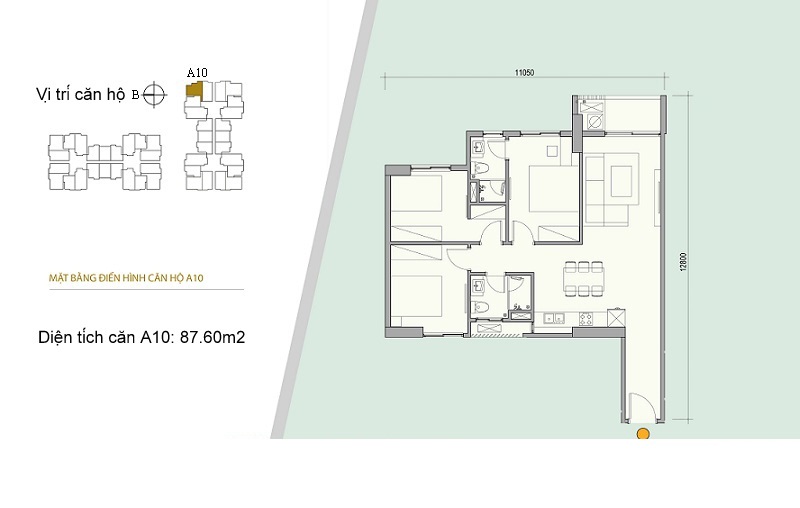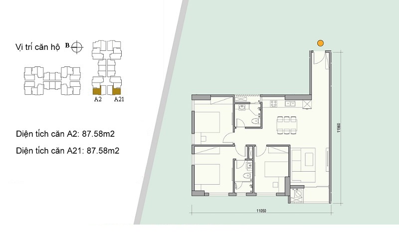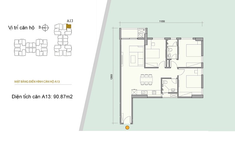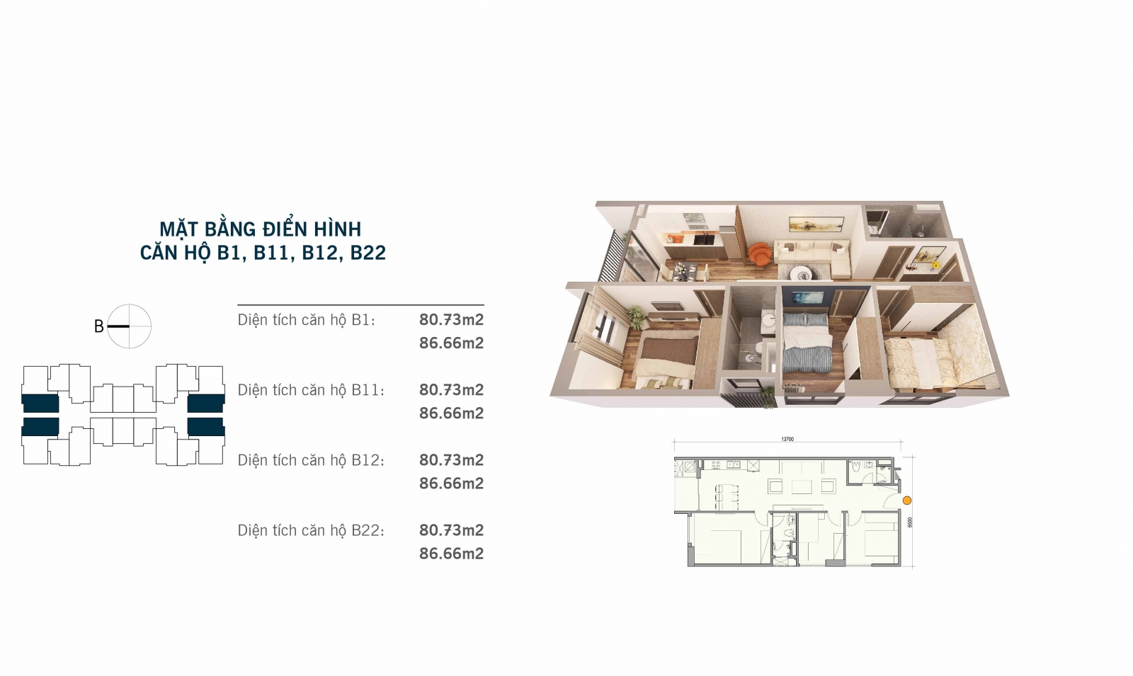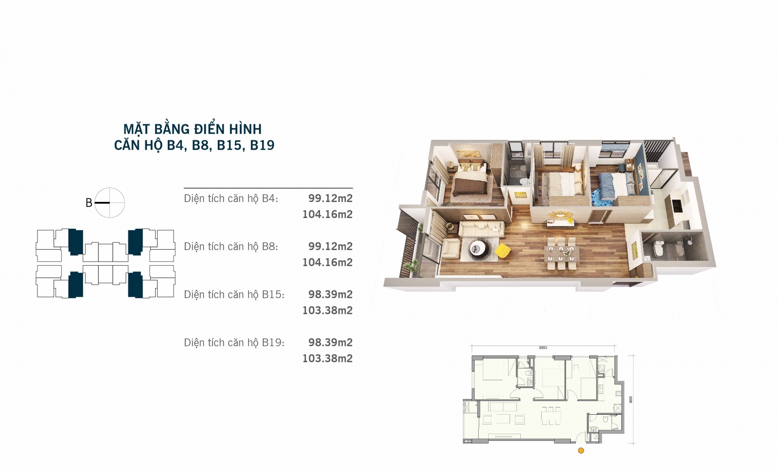 - Căn loại 3 PN: 85,8m2 - 105,2m2