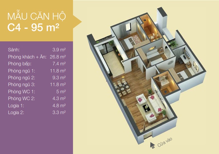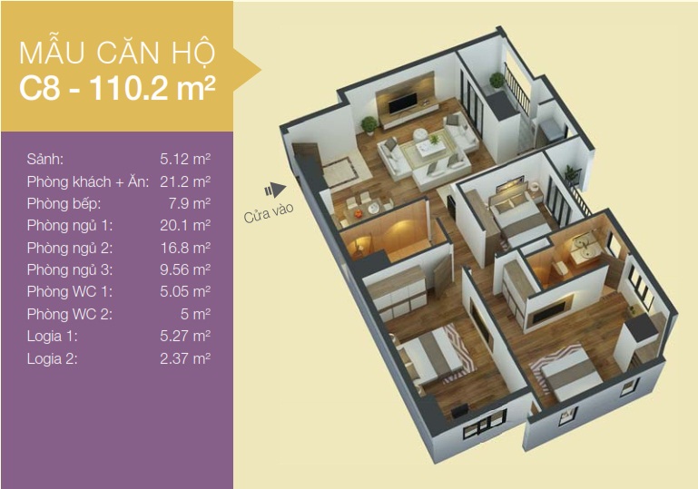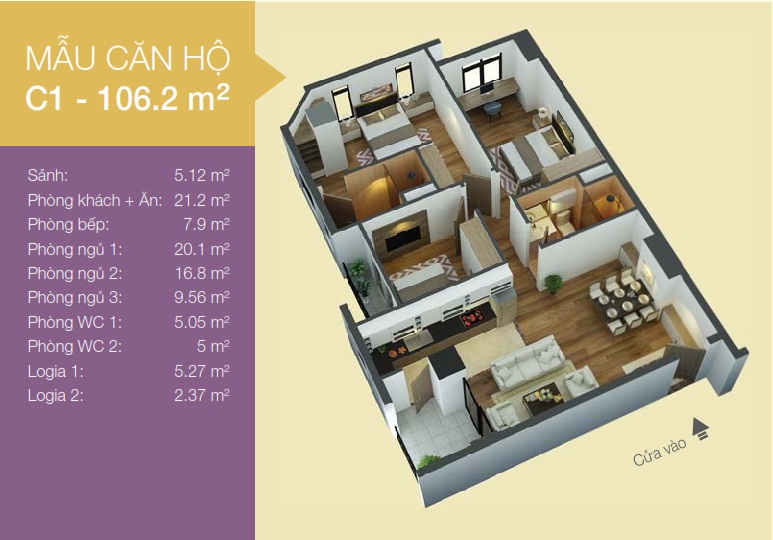 - Căn hộ 3P ngủ: 90m - 91.5m - 102.1m - 109.8m