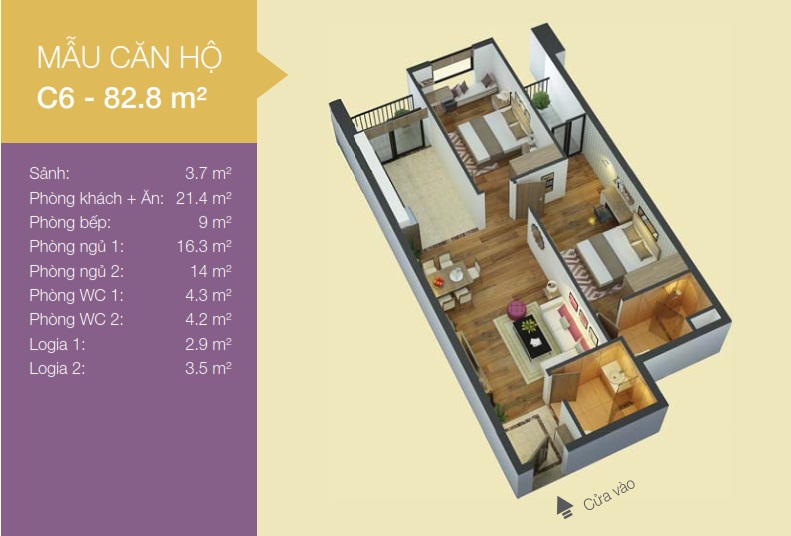 - Căn hộ 2P ngủ: 81.7m - 83.8m - 84.5m