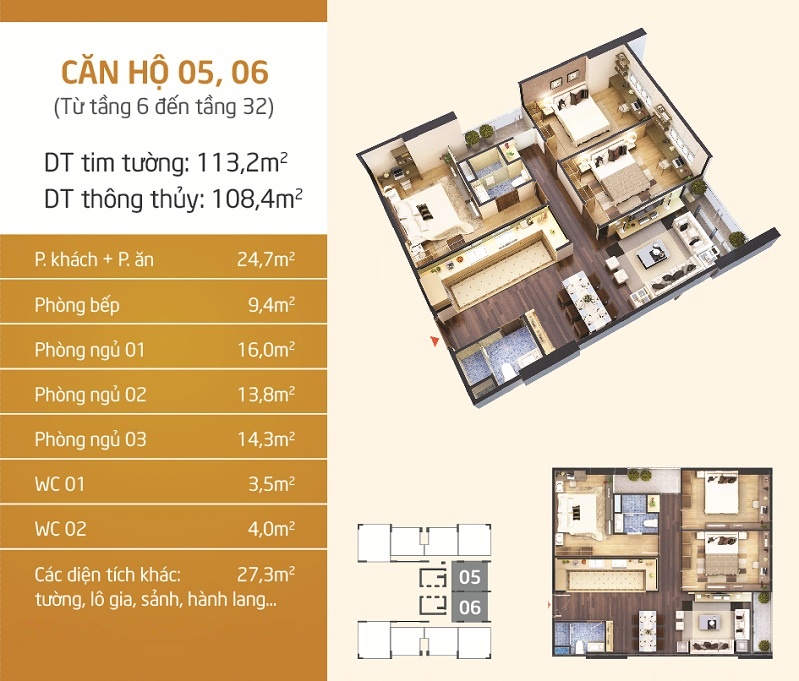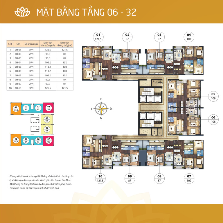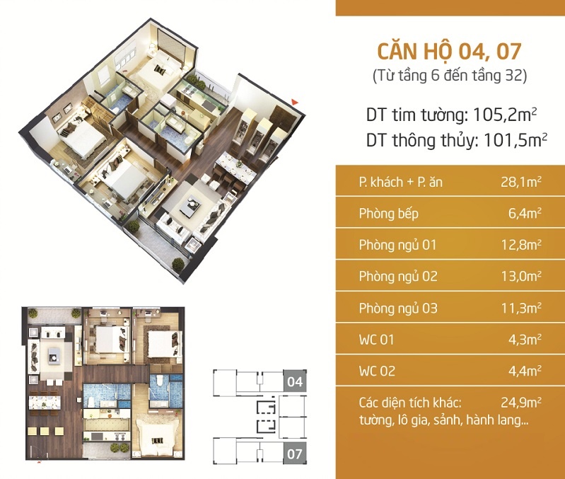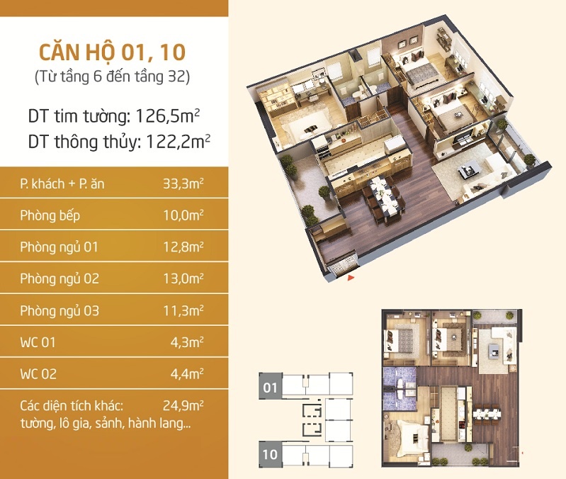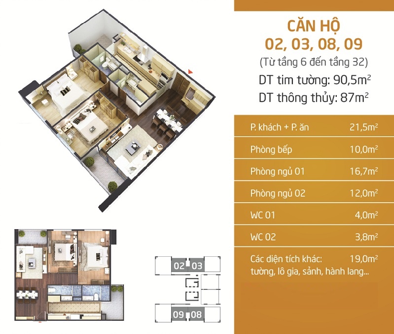 - Diện tích căn hộ: Từ 87m2 đến 190m2,