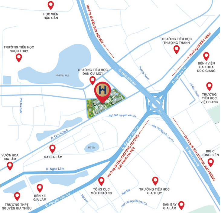 - Trên khu đất No23 đối diện UBND phường Thượng Thanh và chợ Thượng Cát, Chung cư Hanoi Homeland chính là cửa ngõ phía Đông HN, là trung tâm giao thương huyết mạch phía Đông Hà Nội với các tỉnh Hải Phòng, Quảng Ninh, Hải Dương, Bắc Giang, Bắc Ninh, Lạng Sơn thông qua quốc lộ 5 và quốc lộ 1. Dự án cách cầu Chương Dương khoảng 3km, từ dự án cư dân có thể tiếp cận di chuyển vào nội thành chỉ mất 5 – 10 phút lái xe, nhờ đó mọi tiện nghi và nhịp sống sầm uất nơi đô thành vẫn luôn trong tầm tay.