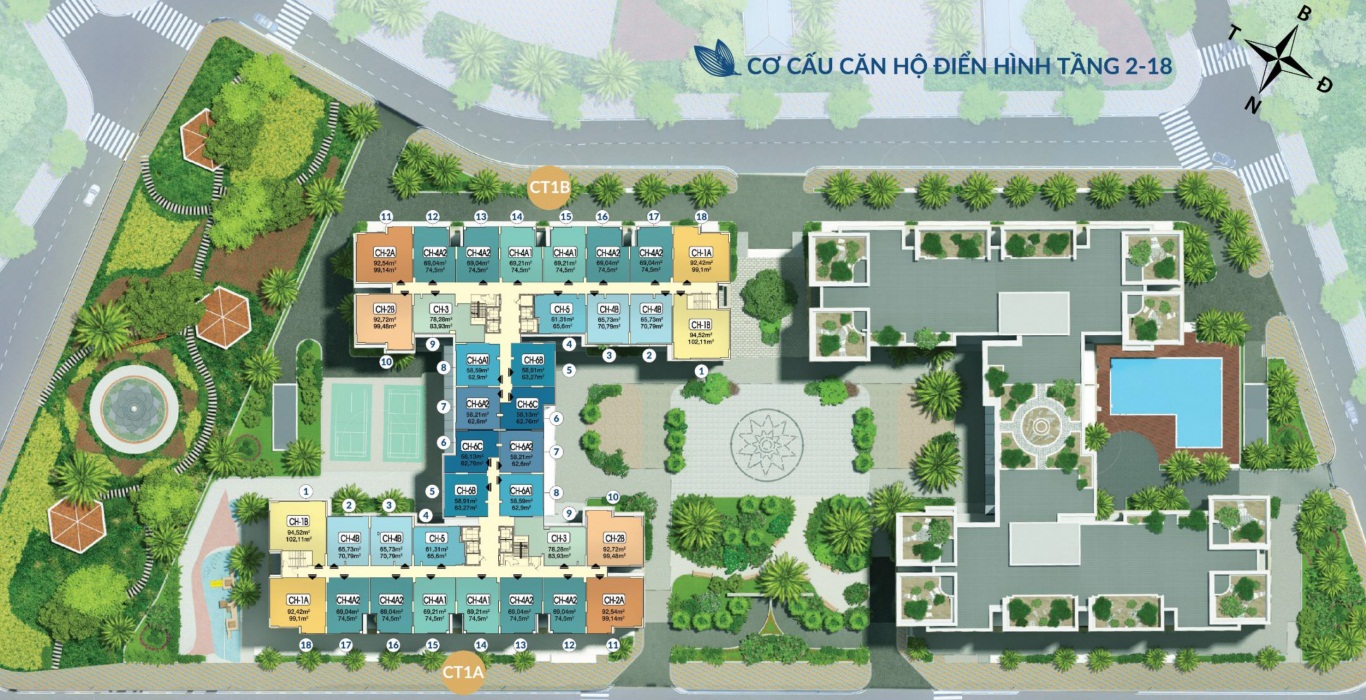 - Quy mô: 4 tòa tháp cao 18 tầng