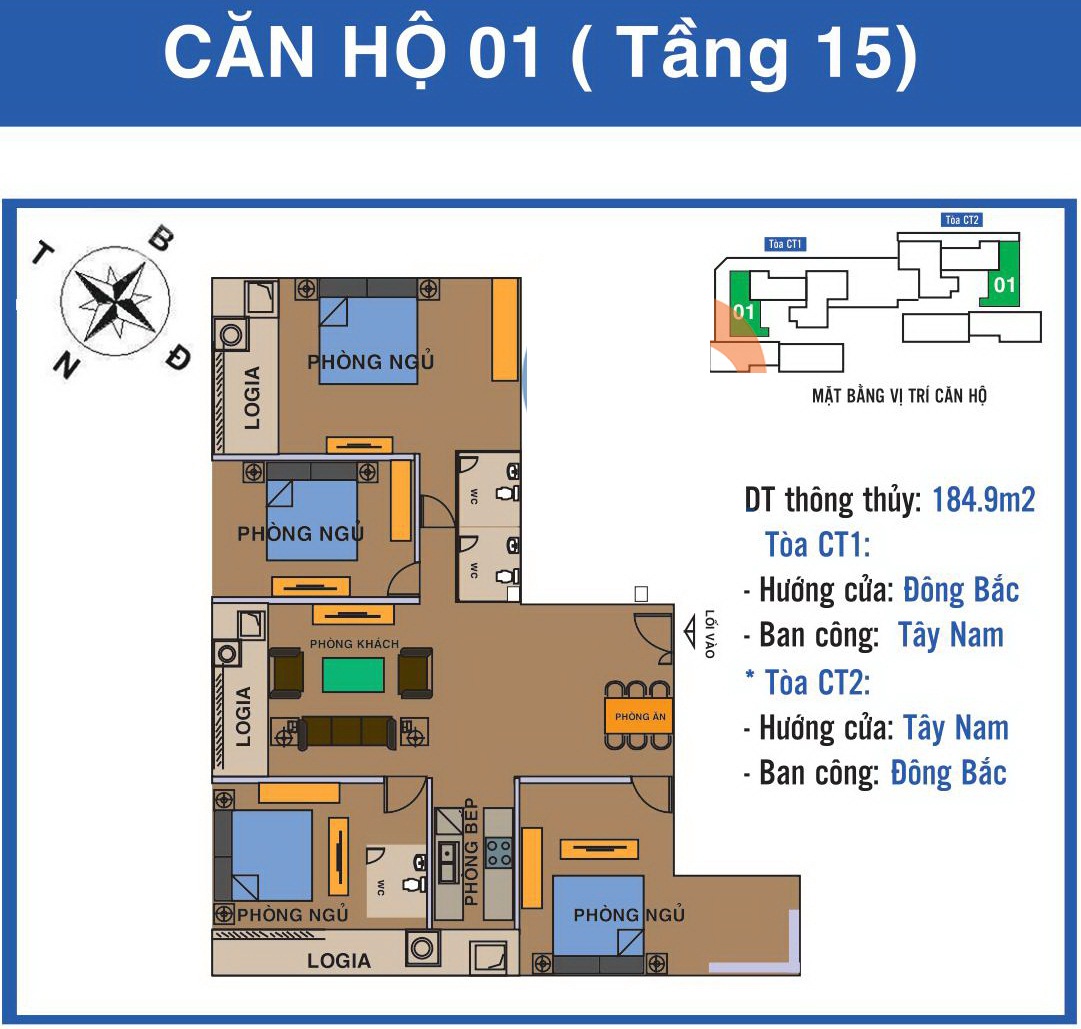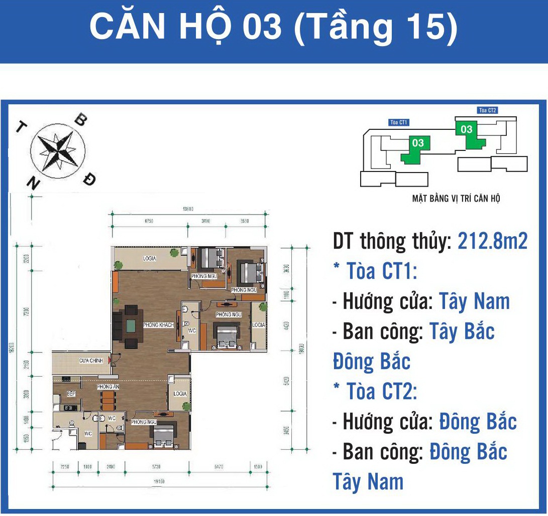 - Căn hộ 3PN + 2 phòng VS: 100,5m2, 123m2