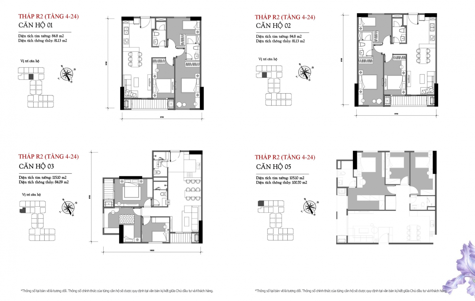 - Cơ cấu diện tích căn hộ: từ 74m2-123m2 có từ 2-4 phòng ngủ