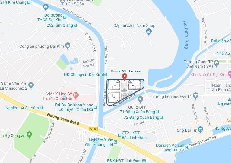 - Khu nhà ở X2 Đại Kim được xây dựng tại Phường Đại Kim - Quận Hoàng Mai. Được xây dựng ngay sát mặt đường Vũ Tông Phan với vị trí thuận lợi, tiếp giáp với nhiều cư dân. Từ dự án đi ra trung tâm thành phố, bến xe, bệnh viện, các trường đại học lớn.