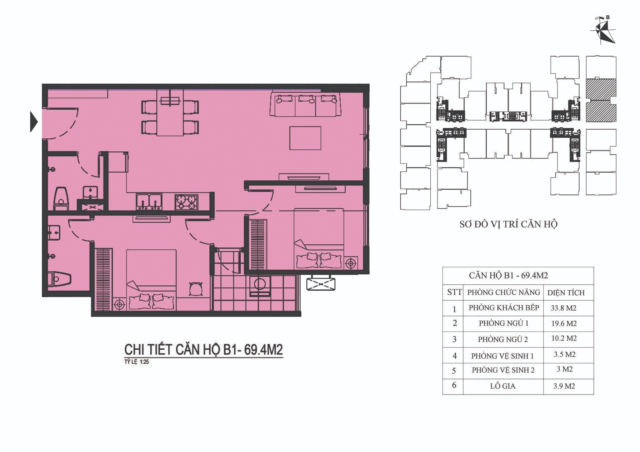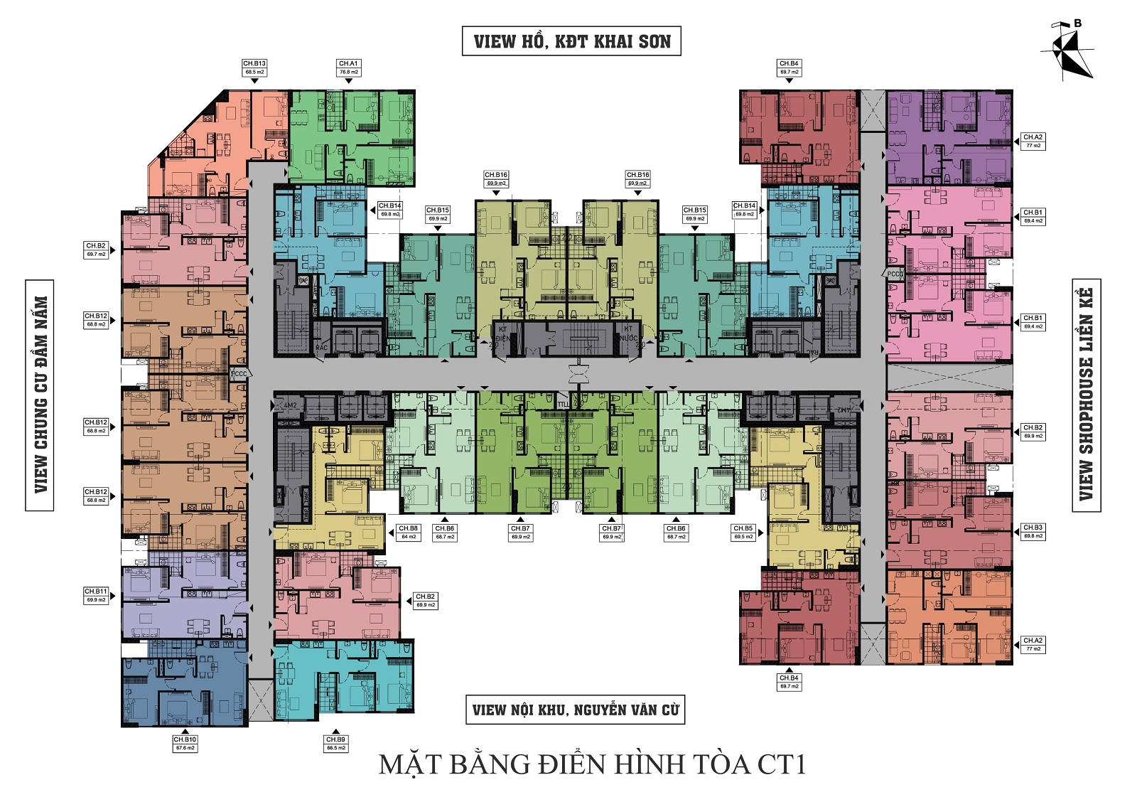 - Diện tích căn hộ: từ 64 - 76.6 m2