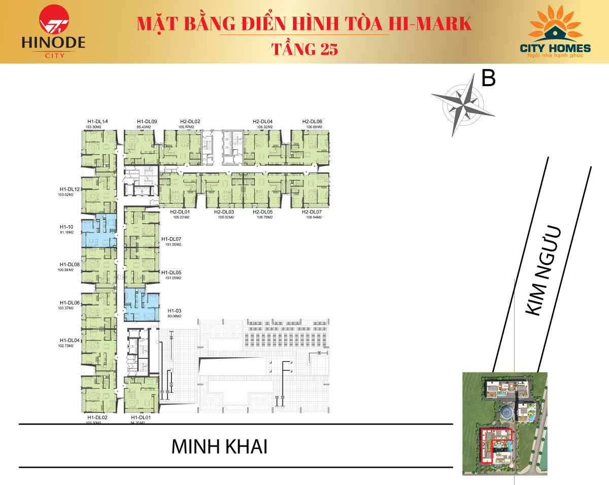 - Dự án Hinode City tọa lạc tại số 201 Minh Khai, P.Minh Khai, TP Hà Nội. Đây là vị trí VÀNG trung tâm quận Hai Bà Trưng, thuận tiện giao thông kết nối với mọi nẻo đường: chỉ 10 phút lái xe tới Bờ Hồ, trung tâm thành phố Hà Nội hay qua cầu Vĩnh Tuy sang Quận Long Biên
