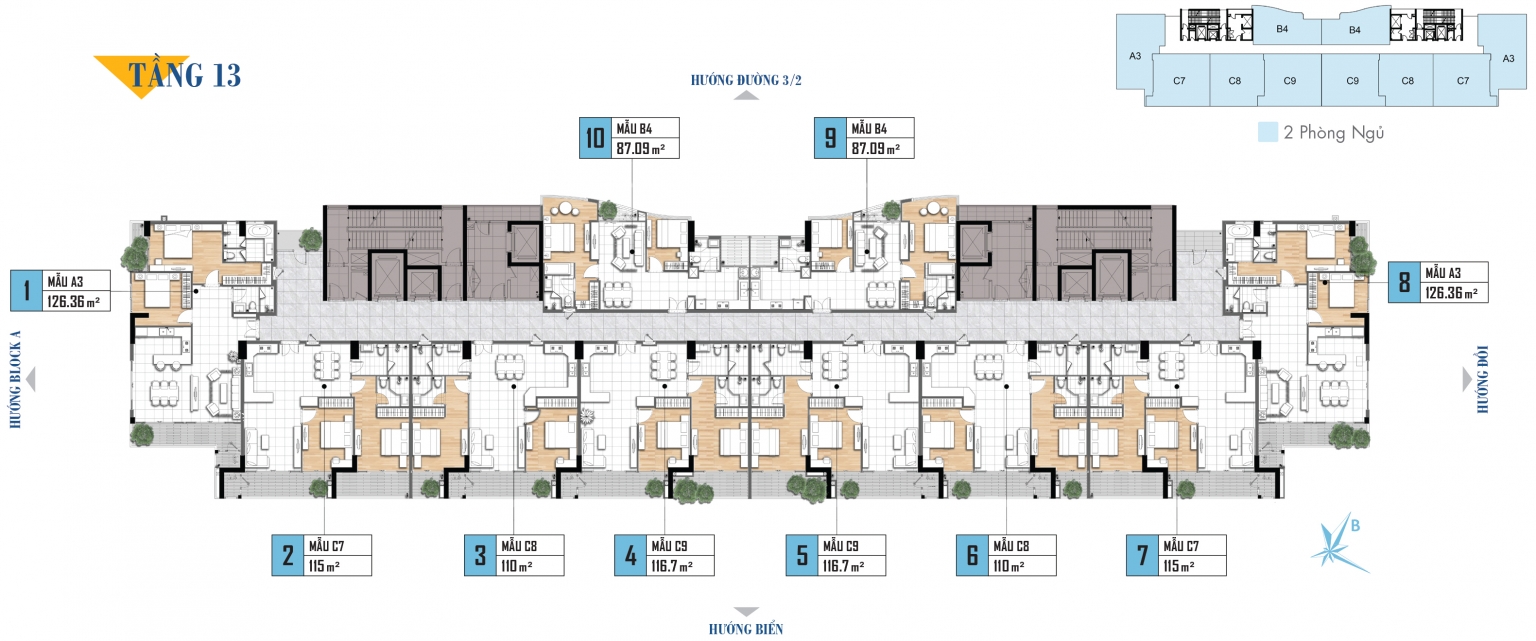 - Căn 3PN: Lầu 2,5,6,7,8,9,11 ( 160m2)