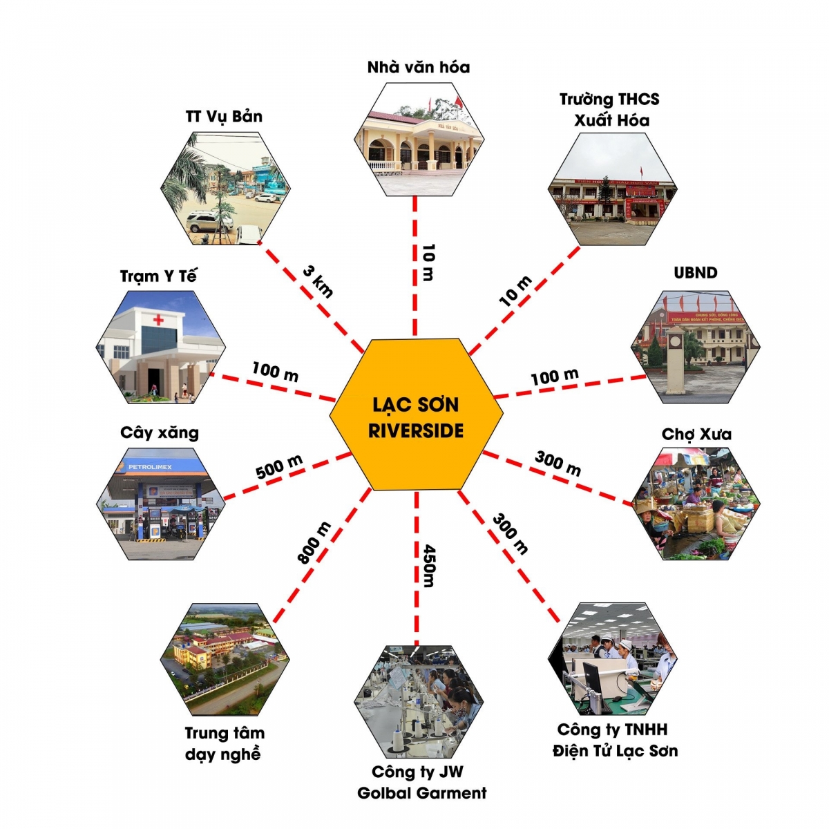- Ngoài ra, tiềm năng của dự án Xuất Hóa Lạc Sơn Riverside còn đến từ vị trí đặc biệt như: