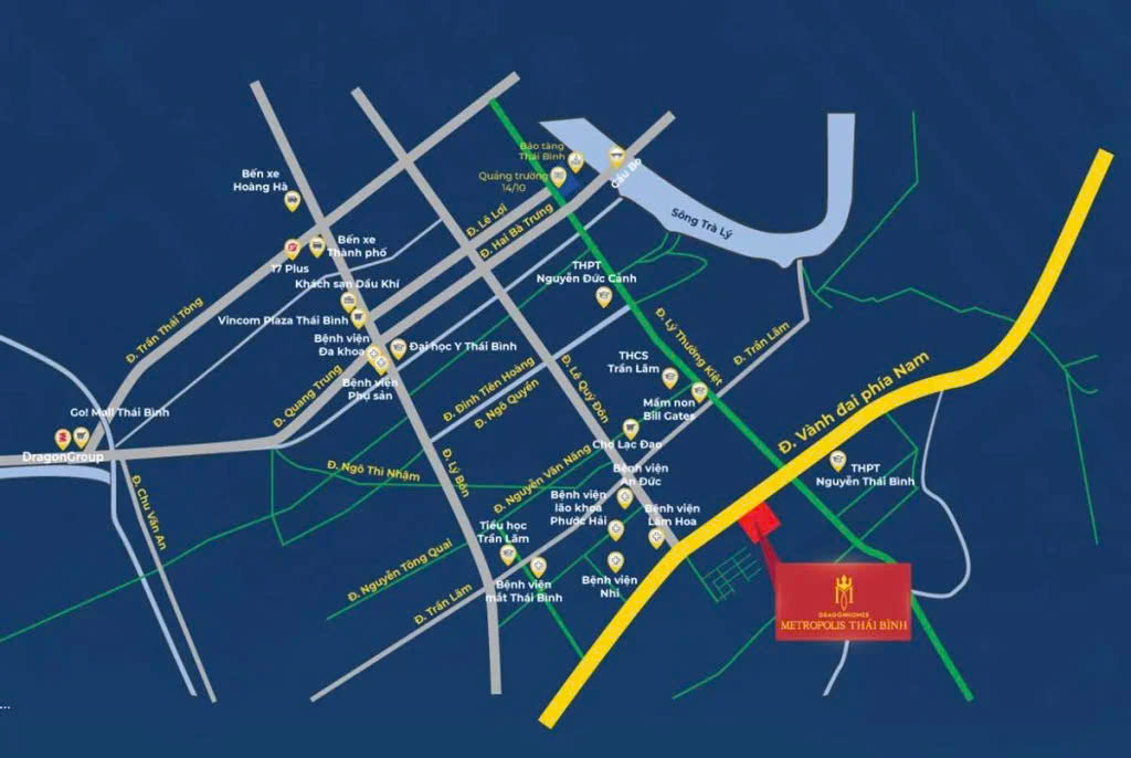 Tọa lạc tại tâm điểm không gian phát triển cực đông nam của thành phố, DragonHomes Metropolis Thái Bình được bao bọc bởi các tuyến đường trọng điểm như đường vành đai phía Nam thành phố, tuyến quốc lộ 39B và đặc biệt đường Lê Quý Đôn kéo, dài tuyến giao thông huyết mạch nằm trong quy hoạch của tỉnh.
