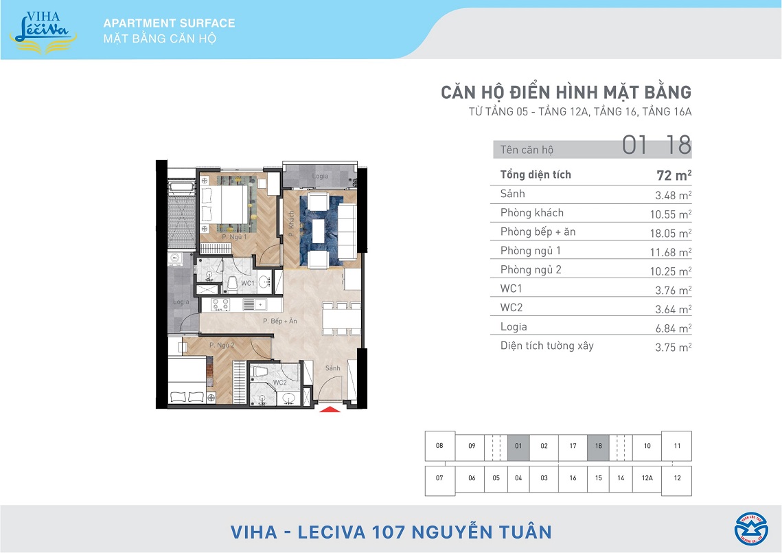 Chung cư Viha Leciva có vị trí tại số 107 Nguyễn Tuân, phường Thanh Xuân Trung, quận Thanh Xuân, Thành phố Hà Nội với 2 mặt tiền là đường Ngụy Như Kom Tum và Nguyễn Tuân.