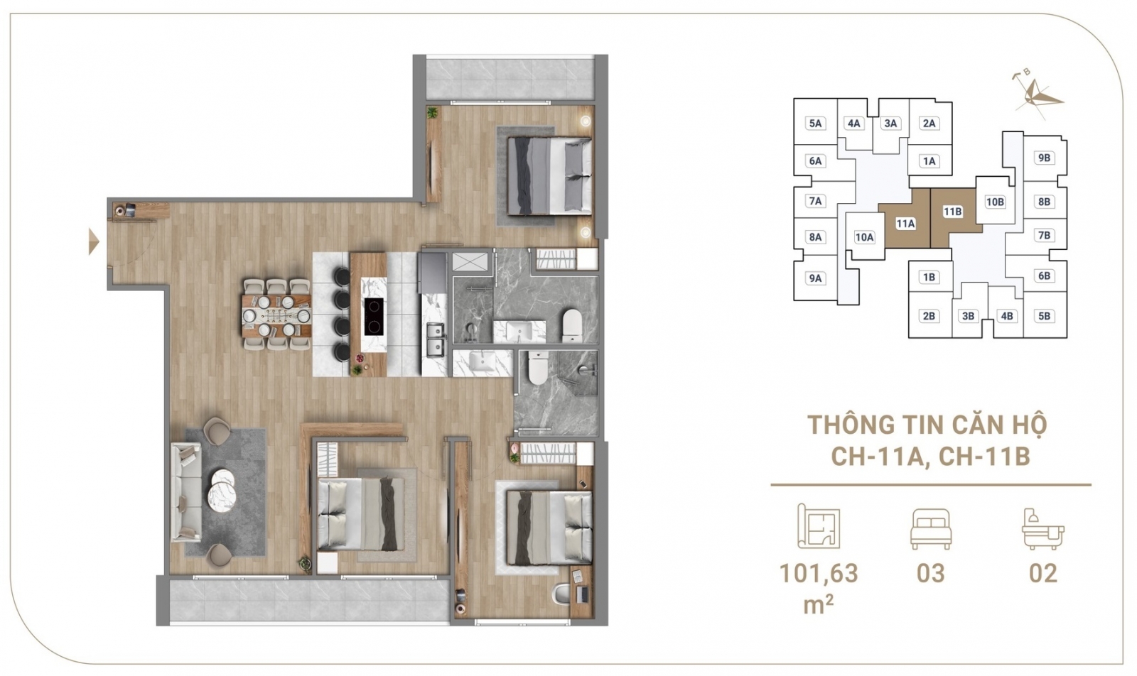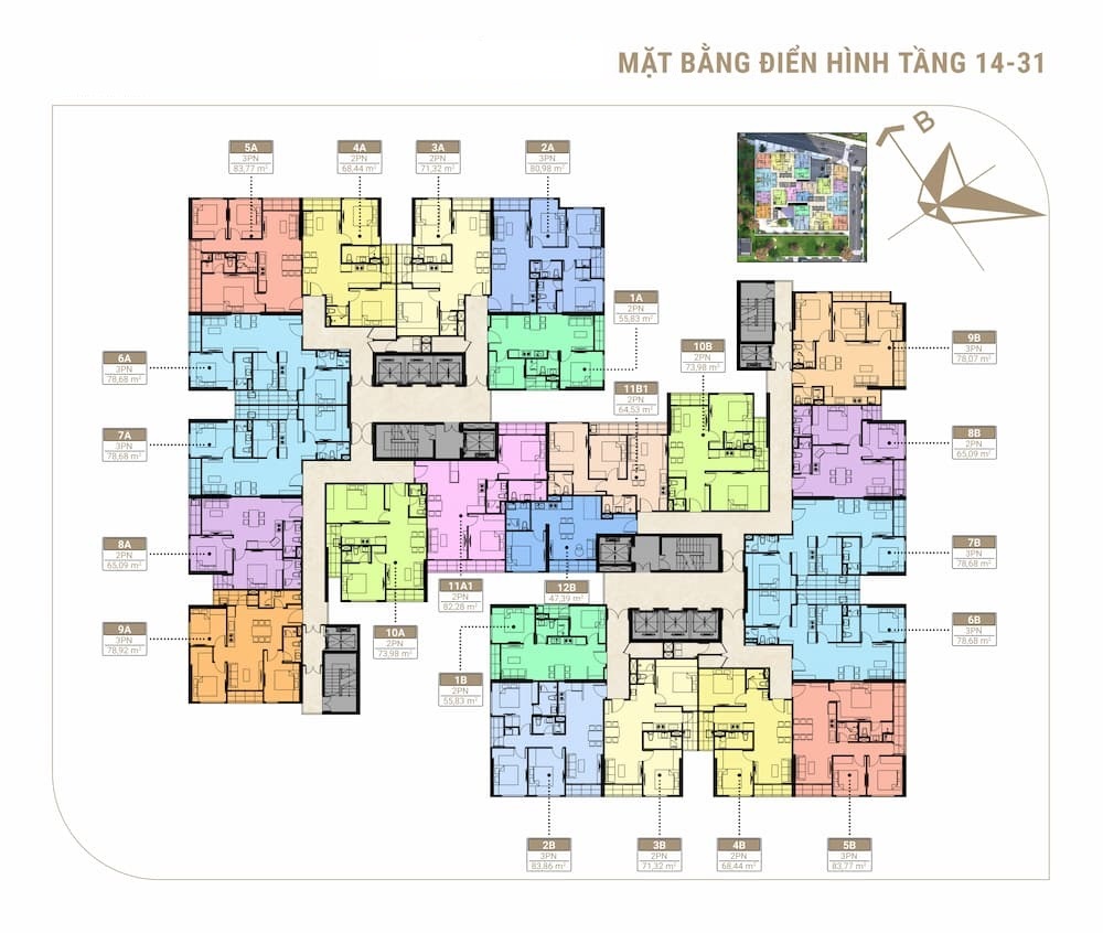 - Diện tích căn hộ: 56-65-67-76-77-79-80-98 m2